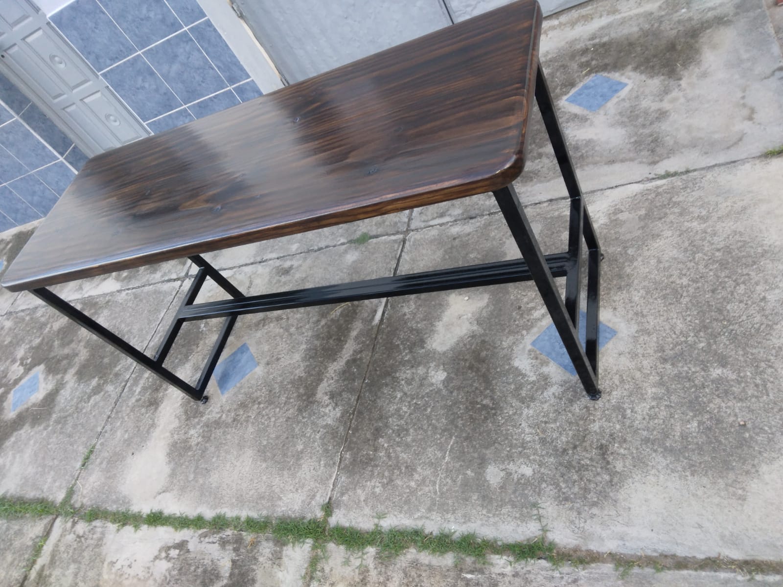 Barra cocina desayunador , confeccionada en caño estructural reforzado , soldada integramente con sistema MIG , el cual asegura uniones sumamente resistentes , Tablero en madera maciza simil nogal, de 5 cm de espesor.