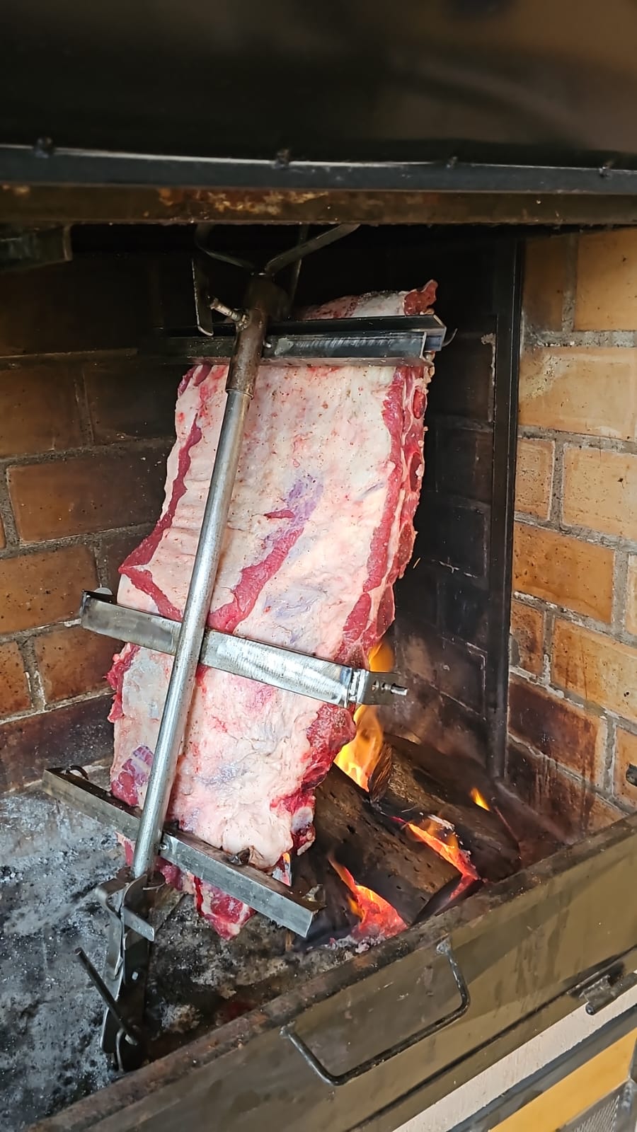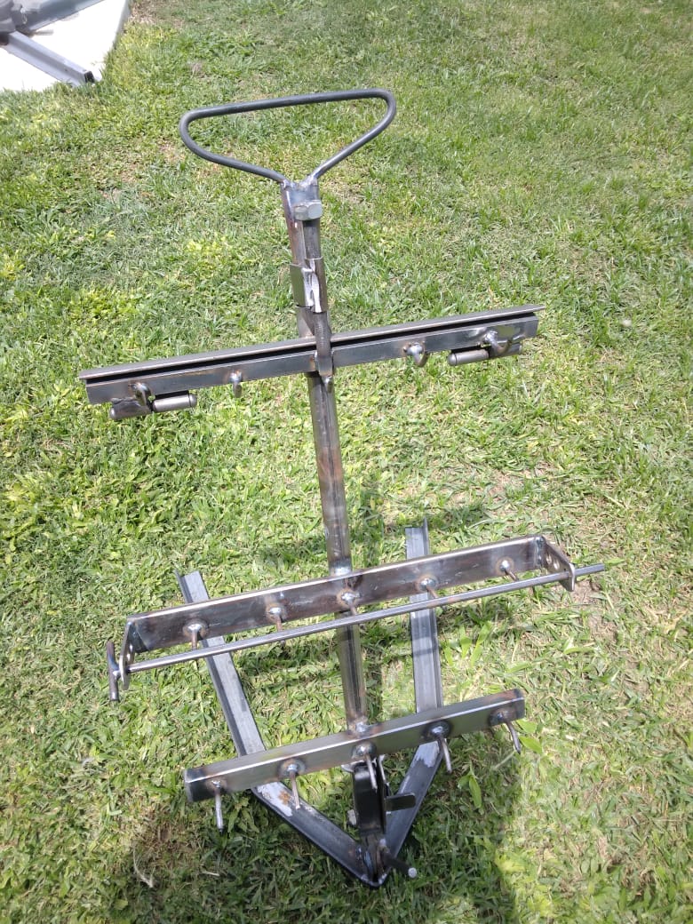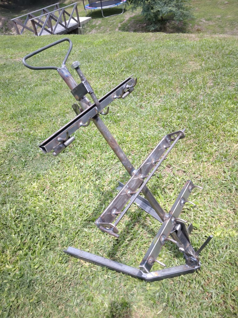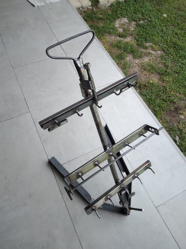 Diseñado para un cómodo y rápido armado y puesta a cocción, íntegramente hecho en hierro , con la versatilidad de permitir sacar cortes parciales ; regulable según el corte de carne por tamaño (costillares , vacíos, lechones o chivos) . Hasta 15 ks aproximadamente. Por su tamaño permite su uso en casi cualquier asado de hogar